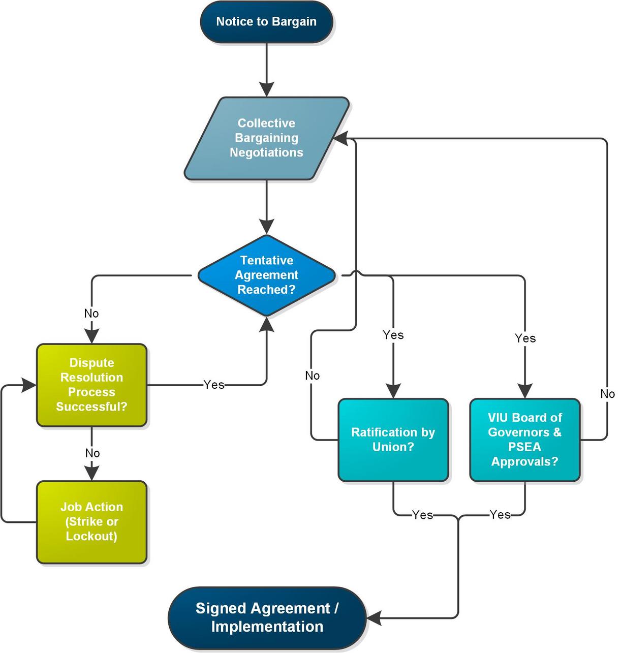 - VIU Board of Governors and PSEA for approvals: the collective agreement must be submitted to the VIU Board of Governors and PSEA for approval before it is implemented. PSEA is the bargaining agent for VIU. (Visit Role of PSEA to learn more)